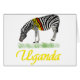 Artikelen versierd met een mooi afbeelding van een zebra, een van de dieren die in Oeganda gevonden zijn. De zebra is gedeeltelijk geschilderd in Oegandese vlagkleuren. Zebras is te zien in het Mburo- en Kidepo-meer.