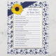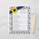 Je kunt de naam personaliseren op dit gele zonnebloem, blauw van de marine en gepersonaliseerd vrijgezellenfeest met witte bloem en lint "wie kent de beste bruid". U kunt de tekst veranderen gebruikend de personaliseer opties. De kleuren van dit vrijgezellenfeest spel zijn geel, blauw en wit.. perfect voor een lente, zomer, of herfst/herfstbruiloft.