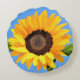 Gele zonnebloem tegen zon op blauwe hemel - zomer rond kussen