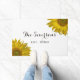 Pas de Gele Zonnebloemen Doormat aan met je familienaam en het jaar dat je getrouwd was of je nieuwe huis kocht. Voel u vrij om de tekst of het lettertype aan uw persoonlijke behoeften aan te passen. Deze vrolijke, botanische welkomstmat is voorzien van gele zonnebloempitten die de hoeken met een witte achtergrond versieren en maakt een geweldig cadeautje voor het huishouden of de bruiloft van een nieuw echtpaar.