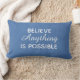 Dit ontwerp kenmerkt een blauwe velvet getextureerde achtergrond samen met de tekst "geloof om het even wat mogelijk is". Deze aangepaste kussen maken een groot inspirerend geschenk. Verkrijgbaar in drie formaten.