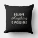 Dit ontwerp kenmerkt een zwarte velvet getextureerde achtergrond samen met de tekst "geloof om het even wat mogelijk is". Deze douane gooit kussen maakt een groot inspirerend geschenk. Verkrijgbaar in drie formaten.