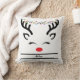 Geloof in schattig Sierkussen voor kerstrendieren. Een grappig en schattig modern abstract afbeelding van een rendierhoofd met kerstverlichting. Met kerstverlichting die aan het gewei hangt. Witte achtergrond. Personaliseer door uw kerstboodschap, familienaam toe te voegen.