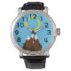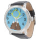 Dit mannen horloge heeft een Indiaans geïnspireerd ontwerp van bergen in bruin en de zon in geel ter ere van Native American Heritage maand. De berg symboliseert bestemming, en de zon symboliseert geluk.