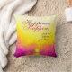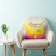 Geluk en geluk. We zoeken het allemaal. Maar vaak doen we wat we nastreven omdat we denken dat het ons gelukkige teleurstellingen zal geven of gewoon helemaal niet werkt. In tegenstelling, soms zijn het de kleine dingen die we vanzelfsprekend vinden of die verduisterd raken in de creaties van gewoon leven die de bron van de grootste vreugde zijn. Aan de ene kant van de kussen, "Geluk gebeurt.. gewoon niet waar je denkt" illustreert deze ironie in paarse en roze letters op een helder, pastelabstract design in magenta en geel. Aan de andere kant is het ontwerp alleen, zonder woorden.