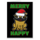 Kute cartoon met kerstkaart. Groene letters.