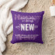 Dit is een stijlvol SIERKUSSEN in paarse, mauve en witte kleurenschema. De inspirerend boodschap GOD MAAKT ALLE DINGEN NIEUW wordt gecombineerd met GELUKKIG NIEUWJAAR in witte typografie tegen een rijke paarse achtergrond. De begroeting Happy New Year is geschreven in een licht mauve script. De plaatsaanduiding Schriftvers is aanpasbaar, zodat u kunt veranderen voor uw eigen favoriete Bijbelvers, jouw naam of andere tekst. Verkrijgbaar in andere kleuren in het NEW YEAR-Collectie, of u kunt uw huisinrichting matchen door op de knop Aanpassen verder te klikken.
