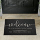 Een groot geschenk voor nieuwigheden of nieuwe huiseigenaars, onze persoonlijke welkome slaapkamer in een mooi en duurzaam zwart, "welkom in ons gelukkig ooit daarna" in een mix van modern handgeschreven kalligrafiekscript en klassiek blokschrift. Pas uw naam aan en het jaar wordt vastgesteld.