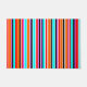 Dit portret heeft een eenvoudig ontwerp van verticale strepen van verschillende dikten in rood, oranje, paars, zwart, lichtblauw en wit.