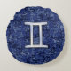 Gemini Zodiac Sign on Navy Blue Digital Camo Rond Kussen