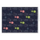 Several Concepts of general relativity are illustrated in the card. Red and green apples represents the concept of local flatness in general relativity. The design of Buckets means the famous thought experiment by Newton, and reconsidered by Mach several hundred years later, arguing whether rotational motions are absolute or not. The design of light cones means that the speed of matters never exceeds that of light. The geodesic equations are illustrated on the front of the card, and the Einstein's field equations are also illustrated behind the card.