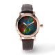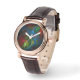 Genesis Blue Abstract Art Perfect Square Brown Leather Watch