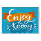 Geniet van vandaag - positieve quote, handgeschreven kalligrafie op blauwe grijpachtergrond en oranje lint. Vectortypografie voor kaarten, T-shirt, posters en sociale media-inhoud. | Bigstock® - Alle rechten voorbehouden.