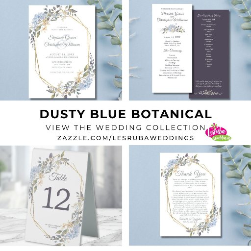 Dusty Blue Florals Gold Frame Wedding CollectionOntworpen door Leslie N.