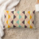 Geometric pattern with overlapping diamonds and triangles in orange, teal, cream, brown, and pink. The design is symmetrical, creating a vibrant, playful feel.