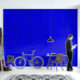 Geometrisch blauw ontwerp behang