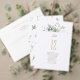 Deze elegante huwelijksuitnodiging combineert de natuurlijke charme van waterverf groen met de verfijnde sprankeling van faux gouden accenten. Een geometrische opstelling voegt een moderne twist toe aan de organische eucalyptusbladeren, geprononceerd in verschillende tinten jade, zeeschuim en jachtgroen. De uitnodiging is omlijst met delicate gouden splatters en takken, het toevoegen van een vleugje luxe. Perfect voor een chique en eigentijdse bruiloft, deze uitnodiging zal uw gasten betoveren met zijn unieke mix van klassieke botanische schoonheid en moderne designelementen.