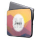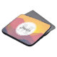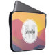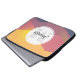 Laptophoes met een grafische illustratie met veel topjes in de bergen met felgeel zonlicht. Gemaakt van geometrische veelhoekige vormen.Eenvoudig minimalistisch ontwerp. De kleuren variëren van donkerblauw tot woestijnrood. Een witte cirkel die over bovenkant met jouw naam en monogram initiaal binnenin gelaagd wordt.