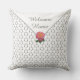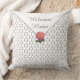 Elegant homecoming grijs gestippeld geometrisch patroon en roze roze Sierkussen van roze roze roze bloem. Mooie zilvergrijze zeshoeken op witte kleur achtergrond. De welkome tekst van het Huis op de voorkant kan worden gepersonaliseerd.
