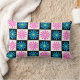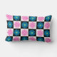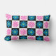 Zwart-wit geometrische geruit roze en blauwe bloemen Abstracte vormen Oppervlaktepatroon ontwerp
