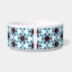 Ingewikkelde geometrische patronen herhalen zich in een symmetrische formatie met behulp van blauwe, zwarte en witte tinten. Het ontwerp richt zich op cirkelvormige motieven die zijn gerangschikt om een visueel aantrekkelijk en uitgebalanceerd effect te creëer.