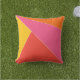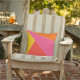 Heldere, kleurrijke, geometrische driehoeken patroon buiten kussen. Een mooie, trendy, moderne buitenkussen voor de zomer.