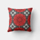 Kussen van de gooi in een geometrisch daisy patroon in diep rood / krimpen op een zwarte en witte achtergrond