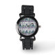 Geometrische driehoek patroon blauw violet groen horloge