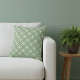 Een opvallend werpkussen met een geometrisch bloemontwerp met een harmonieus kleurenpalet van saliegroen en helder wit.
