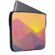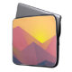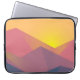 Laptophoes met een grafische illustratie met veel topjes in de bergen met felgeel zonlicht. Gemaakt van geometrische veelhoekige vormen.Eenvoudig minimalistisch ontwerp. De kleuren variëren van donkerblauw tot woestijnrood.