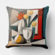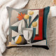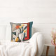 Dit kussen is versierd met multi-gekleurde geometrische vormen.