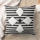 Black White Diamond Geometric Stripes Pattern Sierkussen. Geometrisch patroon met zwarte en witte diamantcirkel met zwarte en witte strepen.