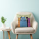 In ruste Librarische kussens. Drie schattige folkletsen met elk een andere expressie. Achterzijde van kussen in coördinerende kleuren met alleen de blauwe kat op een stapel boeken. *Alle afbeeldingen gemaakt door kunstenaar Gail Gabel*