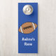 Een blauw footballs deurhanger, die je gemakkelijk kunt personaliseren met hun naam. Geweldig voor de kamer van een kind! De achterkant van deze footballs hanger heeft een bos footballs tegen een blauwe achtergrond.
