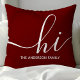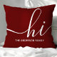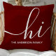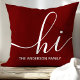 Welkom gasten met een warme en stijlvolle touch met behulp van dit gepersonaliseerde kussen. Met een modern script "hi" en aanpasbare familienaam, vult dit bordeauxrode kussen verschillende woondecoratiestijlen aan. Perfect voor het toevoegen van een persoonlijke touch aan uw woonkamer of slaapkamer.