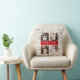 Eenvoudige moderne 4 foto familie kerstvakantie gooi kussen keepsake met een schattige geschilderde kerstboom pattereerde achtergrond. Creëer een combinatie van foto's met mama, papa, huisdieren, voeg dan je namen toe onder het vrolijke + heldere lettertype in het midden van je fotocompositie. Wees creatief met verschillende combinaties. Het hele gezin op elke foto, of op individuele foto's met bijpassende T-shirten voor een voorbeeld. Vervang de voorbeeldfoto's door uw eigen creatieve familiefoto's.