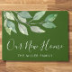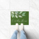 Deze unieke gepersonaliseerde welkomstdeurmat is versierd met waterverf groen en stijlvolle scripttypografie. Gemakkelijk aan te passen. Maakt een geweldig housewarming cadeau. Originele Waterverf © Michele Davies.
