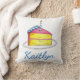 Decoratief werpen kussen kenmerkt een originele tellersillustratie van een plak van verjaardagstaart met roze het vorsen en een kaars op bovenkant. Pas je gewoon aan met de naam van het verjaardagsmeisje voor een unieke gave! Zie je niet wat je zoekt? Hulp nodig bij aanpassingen? Neem contact op met Rebecca om iets voor je te ontwerpen.