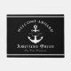 Het nautische "Welcome Aboard" bootmatontwerp heeft een stijlvolle marineblauwe en witte kustesthetiek, geaccentueerd met een bootanker. Personaliseer het met de naam van uw boot, de locatie, de stad, de staat en de vastgestelde datum voor een unieke touch. Deze aangepaste mat is een fantastisch cadeau voor booteigenaren, perfect voor het verwelkomen van gasten aan boord.