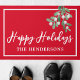 Welkom familie en vrienden met deze Prettige feestdagen. Het is versierd met waterverf maretak op een rode achtergrond. Eenvoudig aan te passen. Gebruik het Hulpmiddel van het Ontwerp om de tekstgrootte, de stijl, of de kleur te veranderen. Terwijl we ons kunstwerk creëer, zult u deze exacte afbeeldingen niet vinden van andere ontwerpers. Oorspronkelijke Waterverf © Michele Davies.