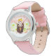 Leuk bloemenhorloge van roestvrijstalen roze lederen kind met een rode panda / mindere panda moeder met zijn baby. Personaliseer met jouw naam. In mijn winkel vind je bijpassende rode panda producten.