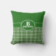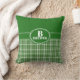 Deze douane gooit kussen heeft een donkergroene achtergrond bovenaan en een vlecht en groen patroon onderaan. In het centrum, kan er monogram logo met met uw initiaal en familienaam worden aangepast.