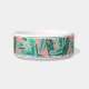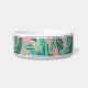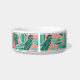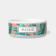 Voor uw eilandhuisdier kenmerkt deze schattige, gepersonaliseerde tropische schaal voor honden of katten een patroon van groene bananenbladeren op een levendige koraalachtergrond die geaccentueerd is met bovenste en onderste strepen. Pas je aan met de naam van je huisdier.