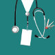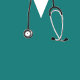 Creative verpleegkundige afstuderen geschenktas ontwerp met blauwgroen ziekenhuisscrubs, stethoscoop en een grote proficiat. Bewerk tekst om de naam van het afstudeerder van de verpleegschool toe te voegen.