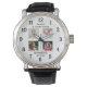 Gepersonaliseerde 4 Photo Collage Familienaam Wit Horloge
