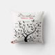 Een "Family Keepsake" Sierkussen met een stencil-art zwarte boom met 20 namen. Je kunt 20 familieleden op dit kussen plaatsen en je kunt alle tekst op de voor- en achterkant bewerken. Dit zou een perfect Moederdag- of kerstcadeau zijn.