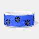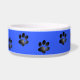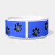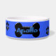 Deze schattige gepersonaliseerde hondenkom heeft een zwart poot print patroon en een groot zwart bot patroon in het midden op een kobaltblauwe achtergrond. Pas het aan door de naam van uw huisdier of de tekst die u wenst toe te voegen in het lettertype, de letterkleur en de lettergrootte van uw keuze!
