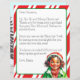 Voeg de naam van uw kind toe aan deze persoonlijke brief van de Kerstman. Schattige waterverf retro klein zwart elf meisje glimlachen. Terug heeft een Noordpool bord met verlichte kerstverlichting en een besneeuwde achtergrond met een stempel van Santa en The North Pole. Candy cane achtergrond.