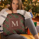 Deze feestelijke kussen zijn perfect voor uw vakantiedecor. Het ontwerp is voorzien van een glansferend en groen vlakpatroon met een gouden accent en is gepersonaliseerd met uw initiaal.