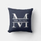 Gepersonaliseerde Elegante Marine Blauw Monogram e Kussen